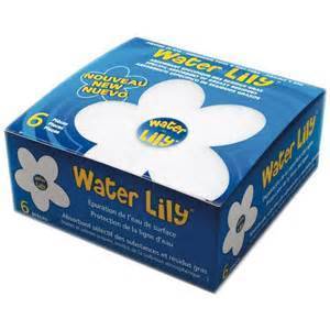 substances grasses ramenées par la circulation d’eau, au fil du temps, Water Lily se teinte d’une coloration brune plus ou moins foncée selon la nature des polluants : crèmes et huiles solaires, pollens, pollution atmosphérique. Il va aider au